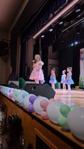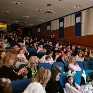 Զատկուան յատուկ զարդարանքով եւ գունաւոր փուչիկներով յարդարուած բեմը, իր տպաւորիչ գեղեցկութեամբ տօնական ուրախութիւն եւ խանդավառ տրամադրութիւն կը ստեղծէր սրահ մուտք գործող բոլոր փոքրիկներու հոգիներուն մէջ։
