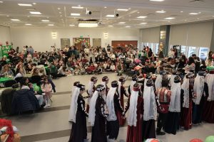 The day was brimming with joy and laughter! The talented Hamazkayin Ani Barakhoump danced gracefully, inviting everyone to join in for a third dance that filled the room with togetherness. Storytime with Sosse added a touch of wonder, leading up to the magical moment when children gathered by the main doors, their voices ringing out to welcome Santa Claus. Each child enjoyed a special moment with Santa, taking photos and receiving a Christmas advent calendar.