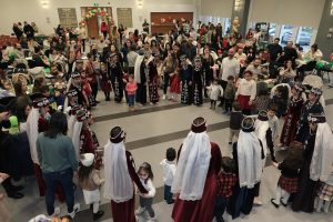 Families, together with their little ones, immersed themselves in a world of creativity, indulging in activities like coloring, bracelet making, playing “Pin the Bowtie on the Gingerbread,” painting, and dancing. The face painting booth was a favorite, while two charming Gingerbread mascots strolled around, capturing smiles, and creating cherished memories. DJ Sarkeys filled the hall with the sounds of Christmas and lively dance tunes, keeping spirits bright.