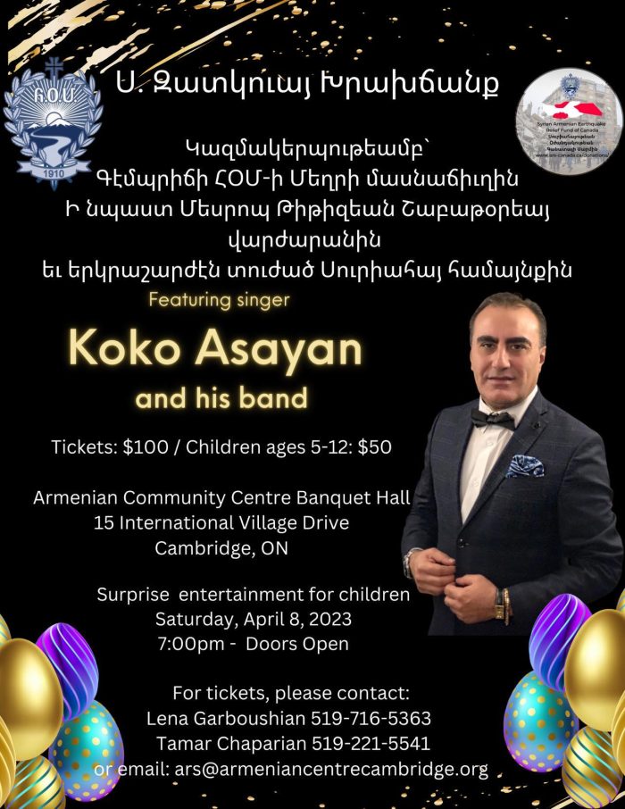 "Շտապ Օգնութեան Խօսուն Պատկերներ" Վաւերագրական տեսերիզի առցանց ներկայացում Սուրիոյ յետ երկրաշարժի տարուած աշխատանքներուն մասին։ Հաճեցէք դիտել, Ապրիլ 29, 2023, կ․ե․ ժամը 2։00-ին։ Please watch on April 29th at 2 p.m. an important documentary about the emergency relief provided by Canadian Armenians to Syrian Armenians after the February 6th earthquake. You will see how your […] |